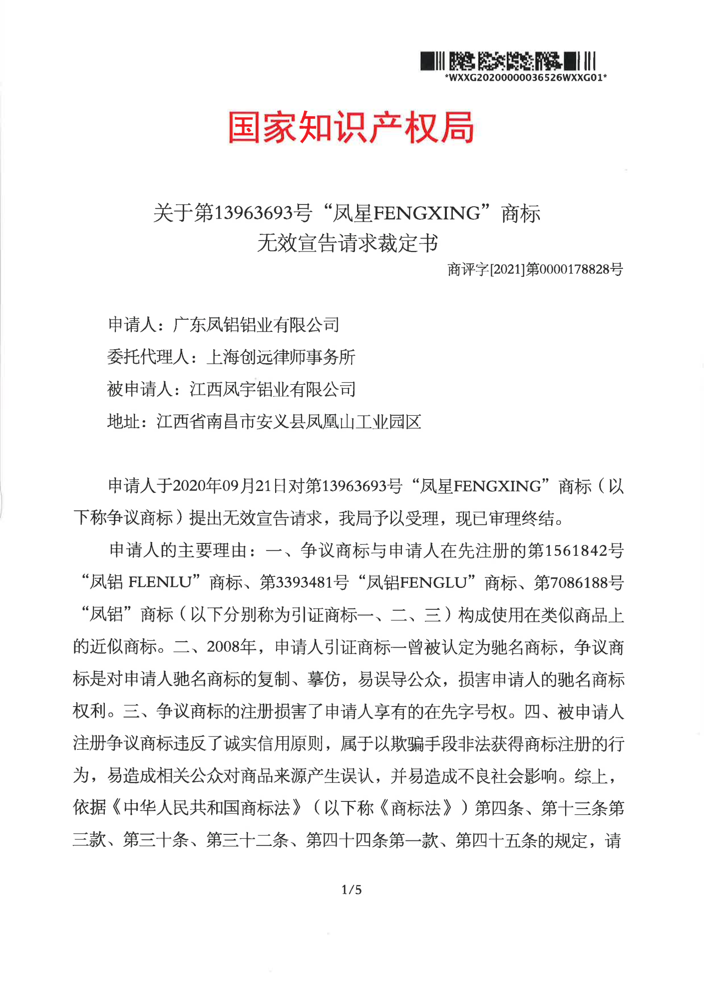 株洲辉知队 | 国家知识产权局:“凤星”商标无效
